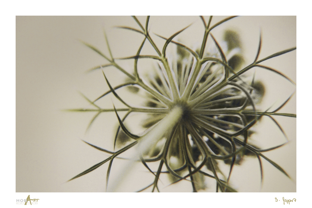 Why not looking at the world from below for a change? Sometimes, leaving one's habits and maybe even one's comfort zone behind brings completely new insights. You see new images or rediscover well-known objects in a new perspective, creating new impressions, new ideas. Our artist Bernadette Göppert shows a common "wild carrot". Photographed from an unfamiliar perspective, it suddenly appears to be a piece of art. We all should take unfamiliar steps every now and then, occasionally try out uncomfortable viewpoints, to broaden our horizon and identify new chances. Let's think outside of the box!